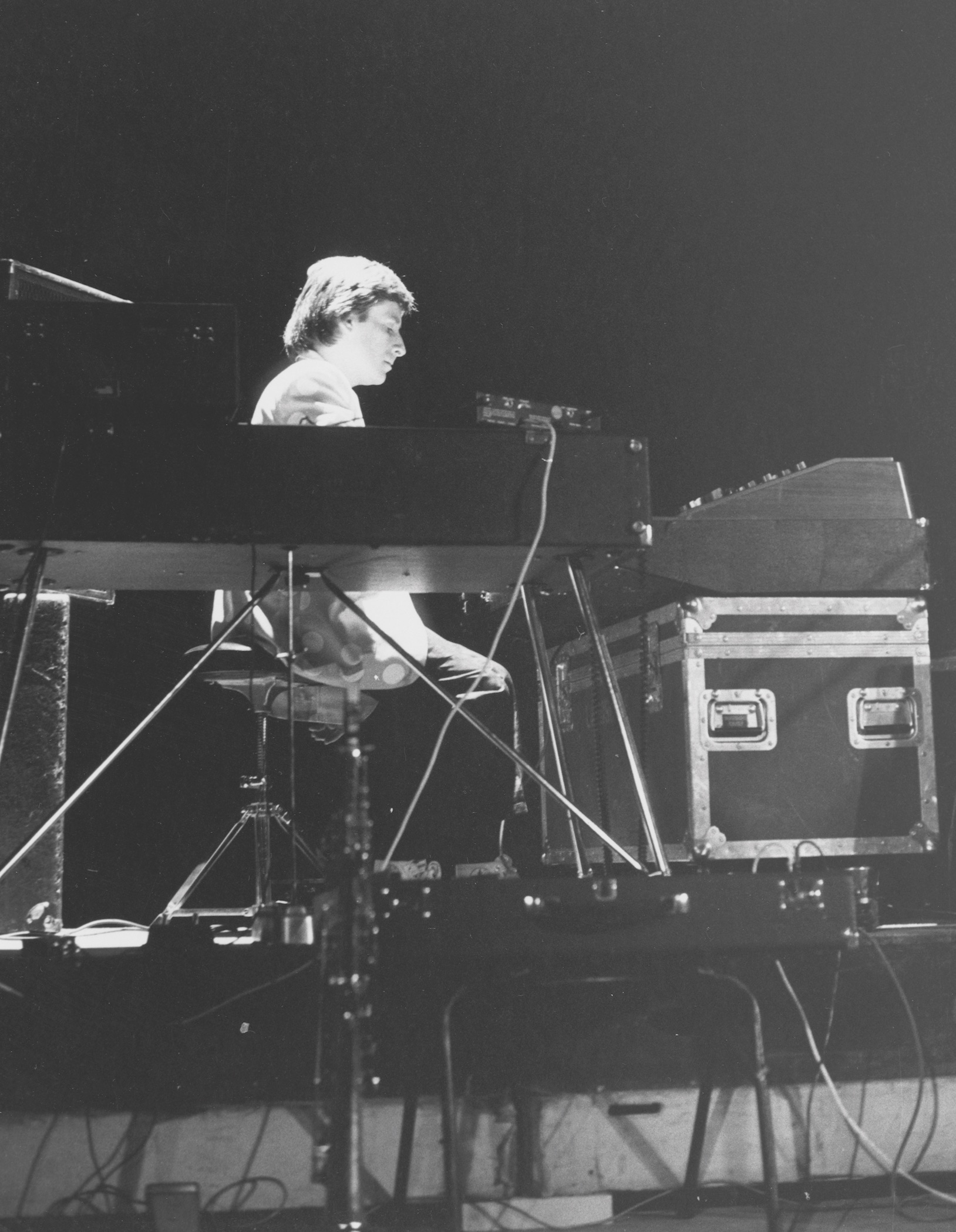 Chris worked for classical music publisher Universal Edition preparing scores and performance material. He arranged early music for wind band for an Arts Council tour and gave lectures in jazz analysis at the Guildhall School of Music. He was an early user of the ring modulator and various foot pedals and delays to modify the sound of his Fender Rhodes piano. Landscape became busier. He purchased a Yamaha CS-80 polyphonic synthesizer that expanded his sound palette, later adding Moog synthesizer.