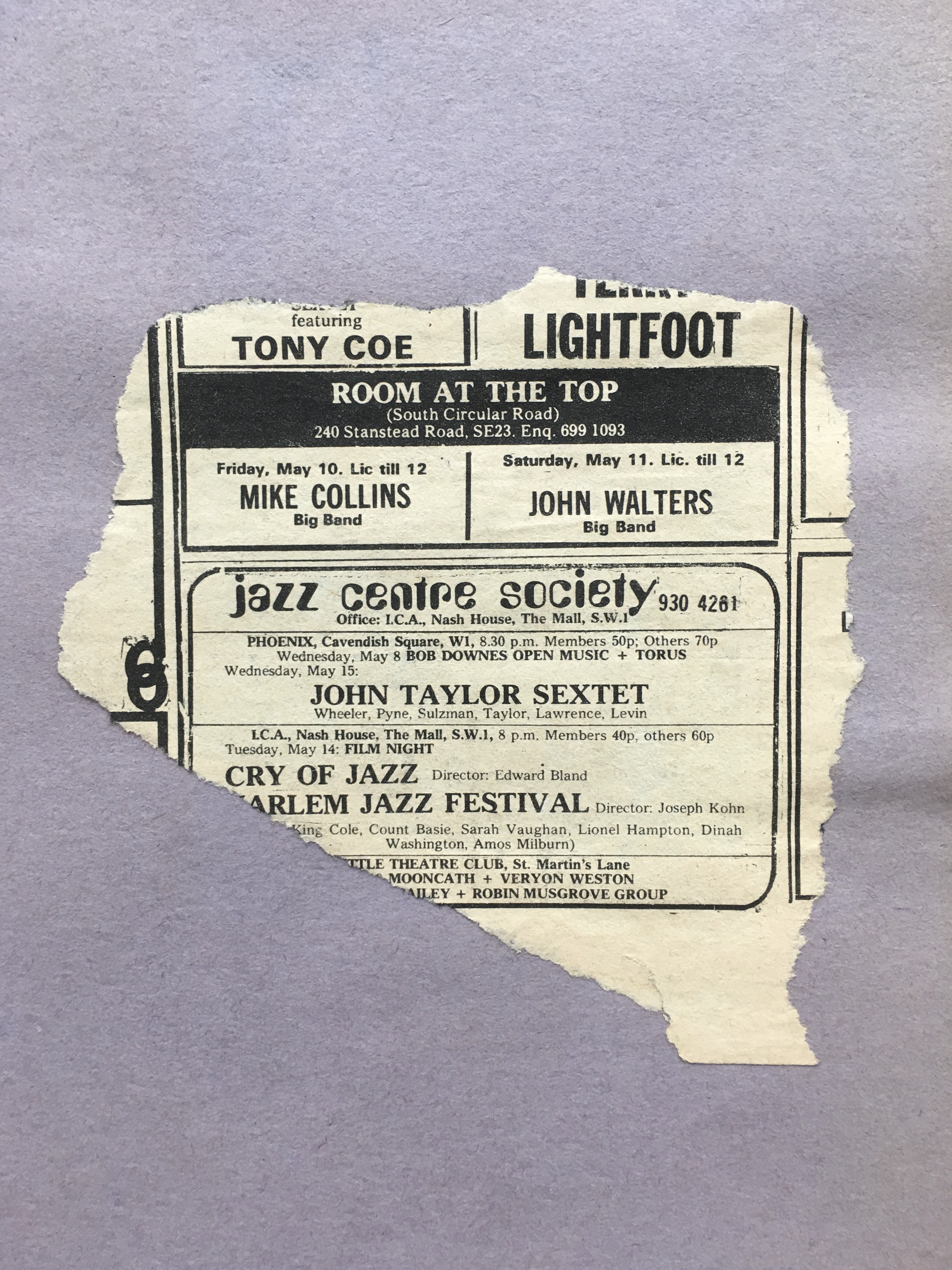 Just look at who else was playing that week: Tony Coe, Bob Downes Open Music, John Taylor with Kenny Wheeler and Stan Sulzman, Veryon Weston …
