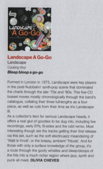 As a collecior's item for serious Landscape heads, it offers a real glut of goodies to be dug into, including live recordings, early EPs, B-sides and the odd remix. Most interesting though are the tracks getting their first release via this set, such as the soft electro-jazz meandering of ‘Watt is Knott’, or the brassy, ambient ‘Tribute’. And for those with only a surface knowledge of the group, it’s a route through the goofy whistles and bleep-bloops of the hits into a much richer region where jazz, synth and punk all meet.
