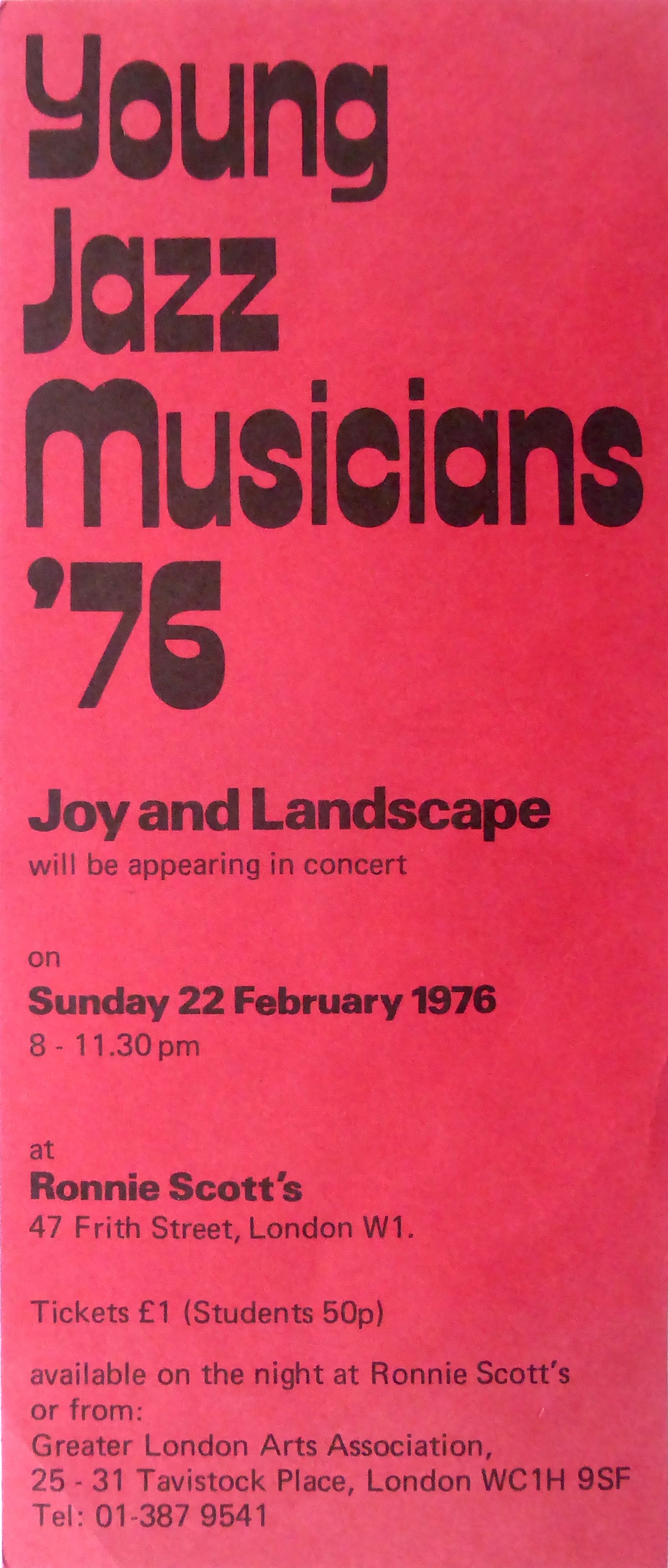 FLYER FOR GLAA YOUNG JAZZ MUSICIANS ’76 CONCERT AT RONNIE SCOTT’S