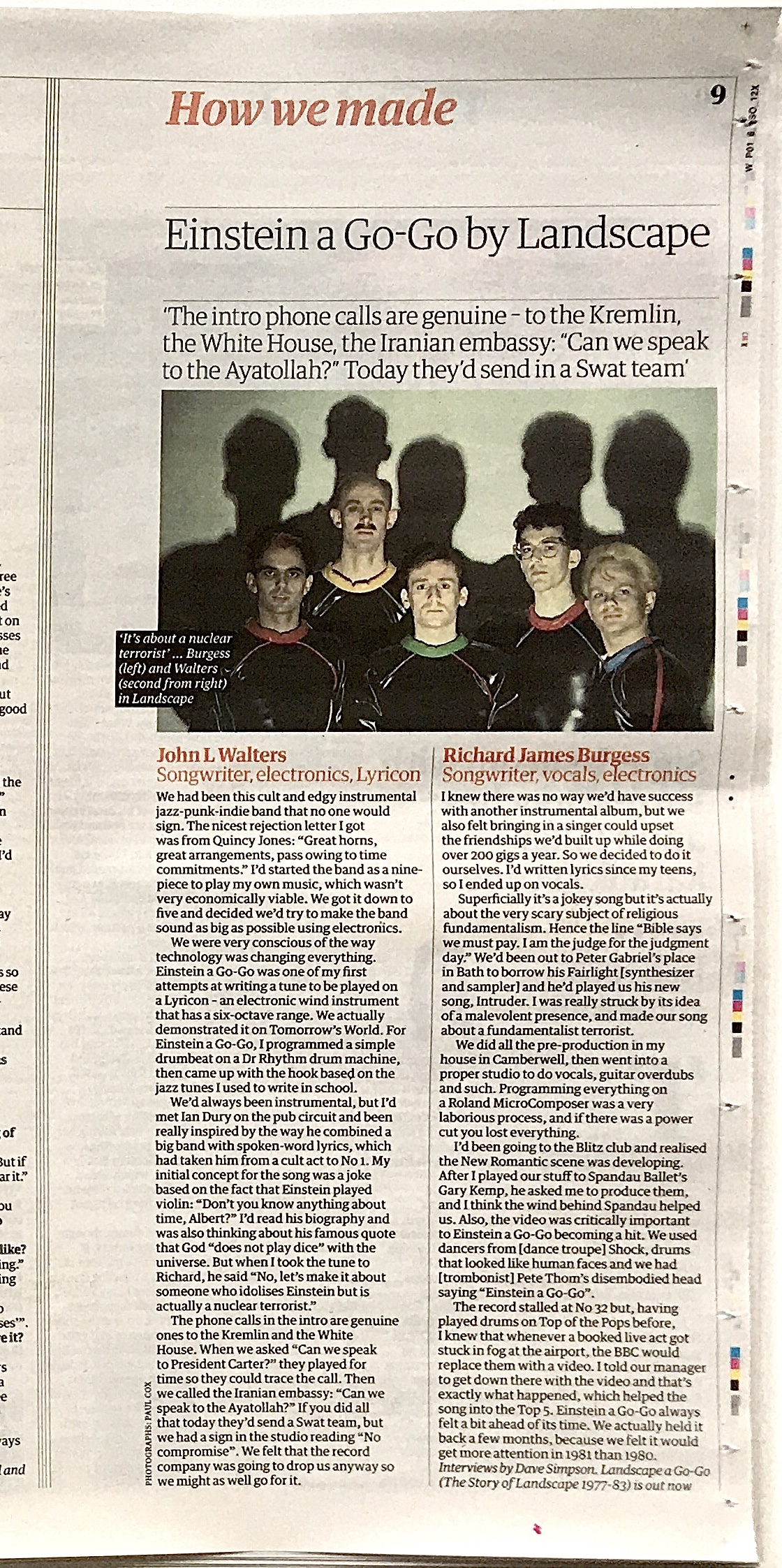 Feature by Dave Simpson: How we made ‘Einstein a Go-Go’, Guardian G2 page 9 (alongside Barbie feature).