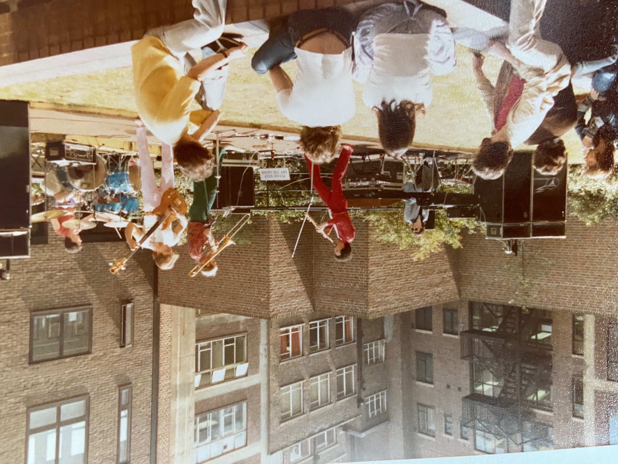 Left to right: Chris Heaton (Fender Rhodes, CS80), John L. Walters (lyricon and electric soprano sax), Peter Thoms (electric trombone), Andy Pask (fretless bass), Richard James Burgess (drums).