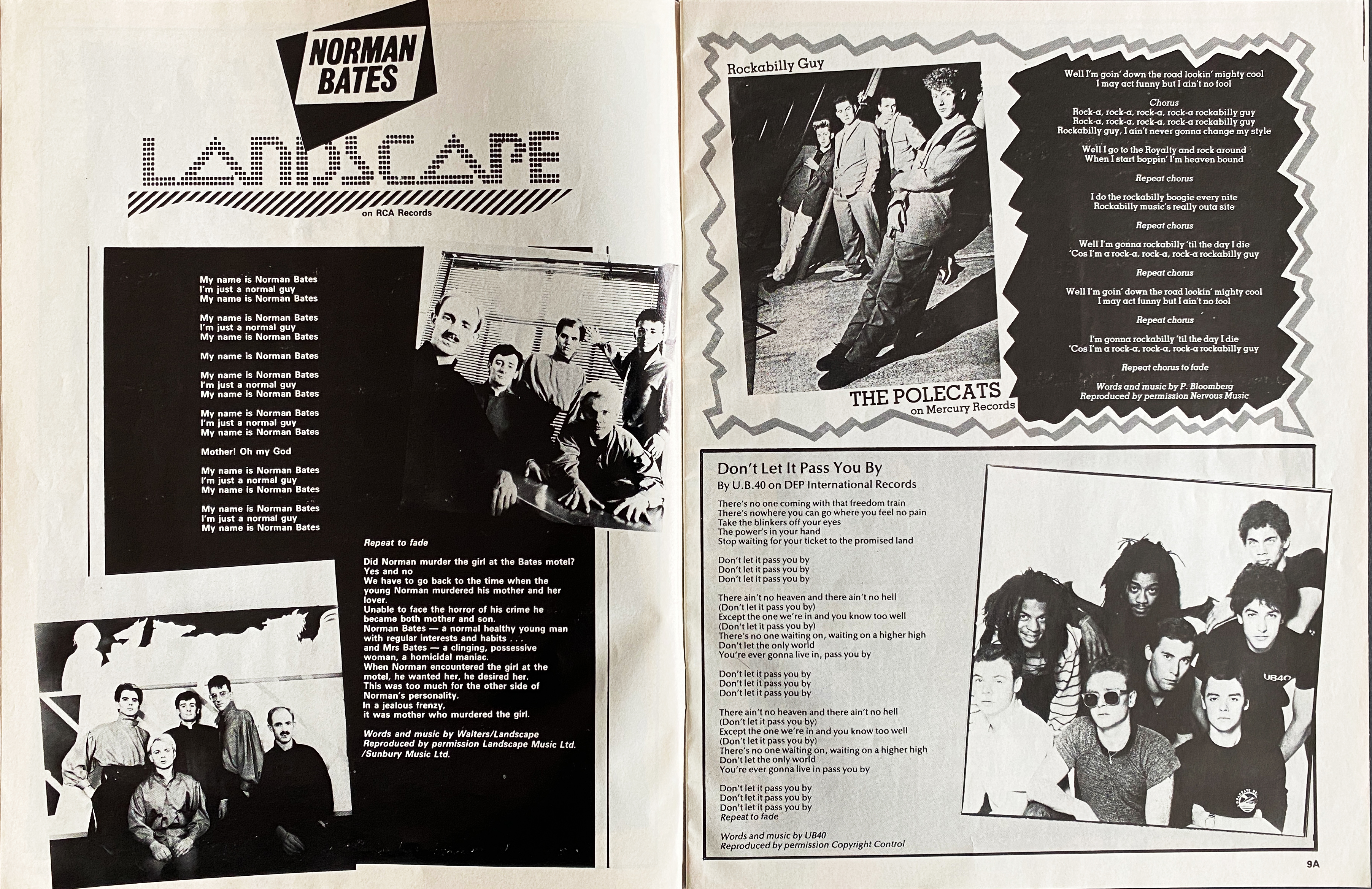 An internal page (below) featured the catchy lyrics to ‘Norman Bates’, a serial killer singalong, accompanied by more pictures from the same session.